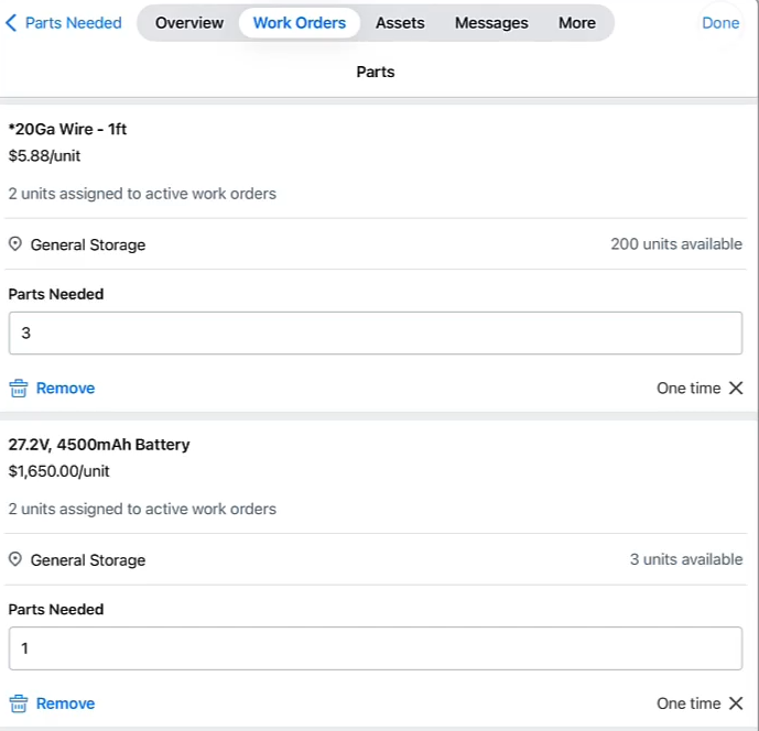 This creates a clear record of inventory usage and helps connect material spend directly to specific maintenance activities.