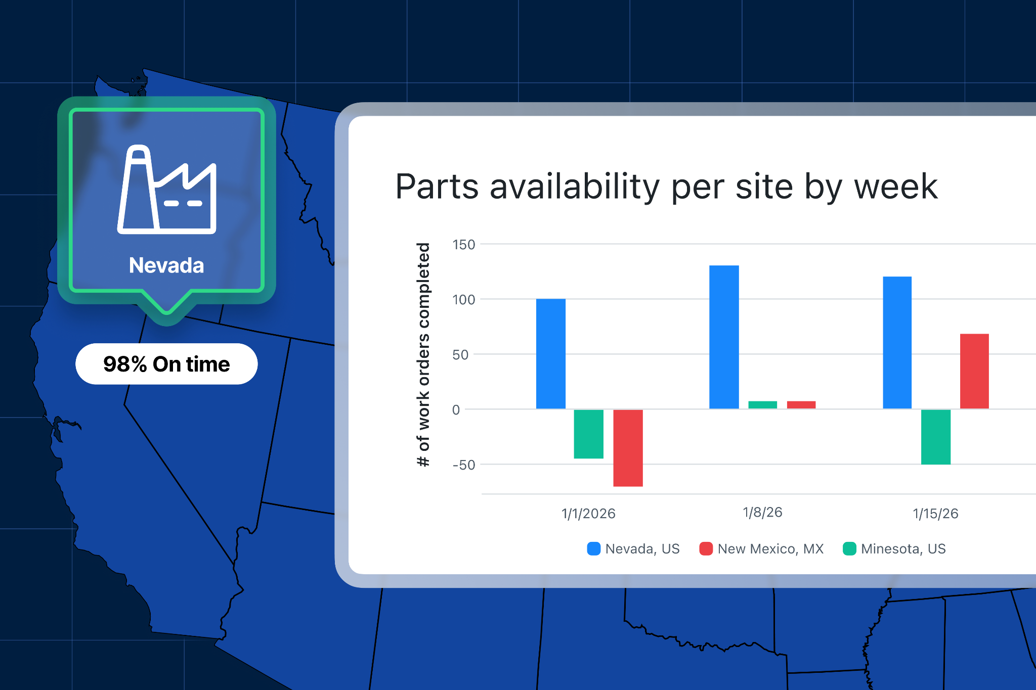 For example, one site might have an on-time completion rate of 98% for work orders on critical assets. A deeper look reveals that parts inventory is consistently above the minimum thresholds the team set. After speaking with the maintenance manager, you learn that their team always checks parts availability ahead of the scheduled start date.