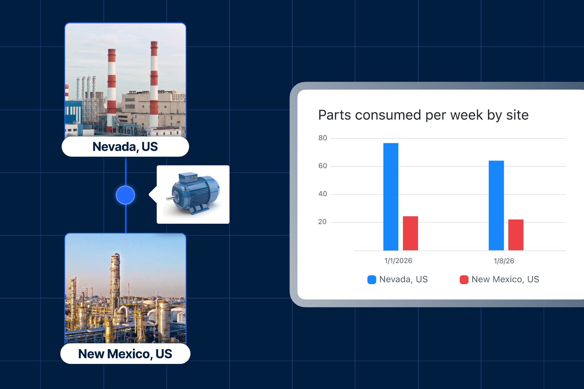 If you notice one site consuming significantly more parts than others, you can act immediately with Global Parts by redistributing inventory from lower-usage sites to where it is needed most.