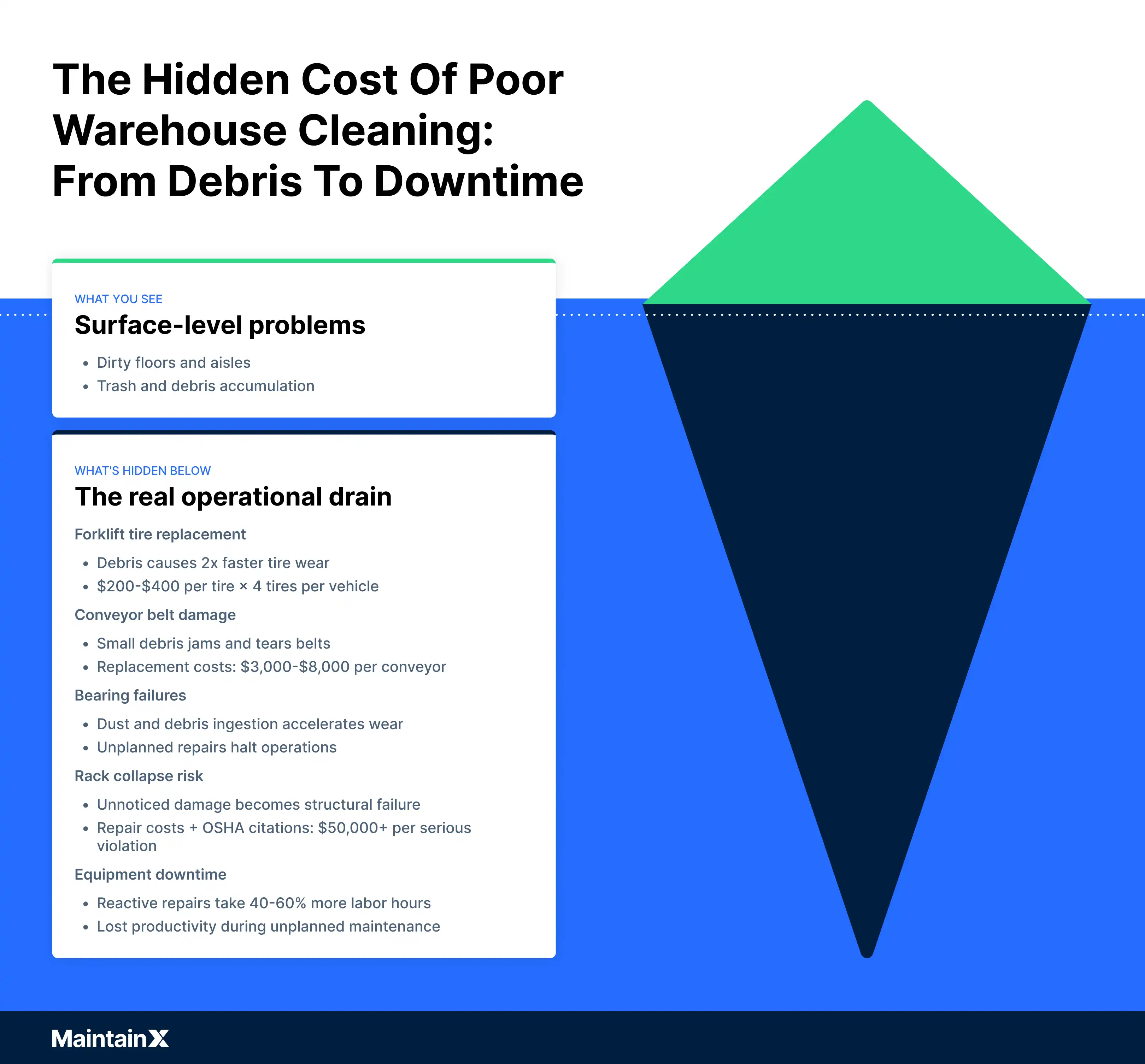 The financial exposure compounds in both directions. Equipment repair costs climb when preventable damage shortens asset life. Compliance penalties escalate when facilities can't produce documentation proving consistent housekeeping standards.